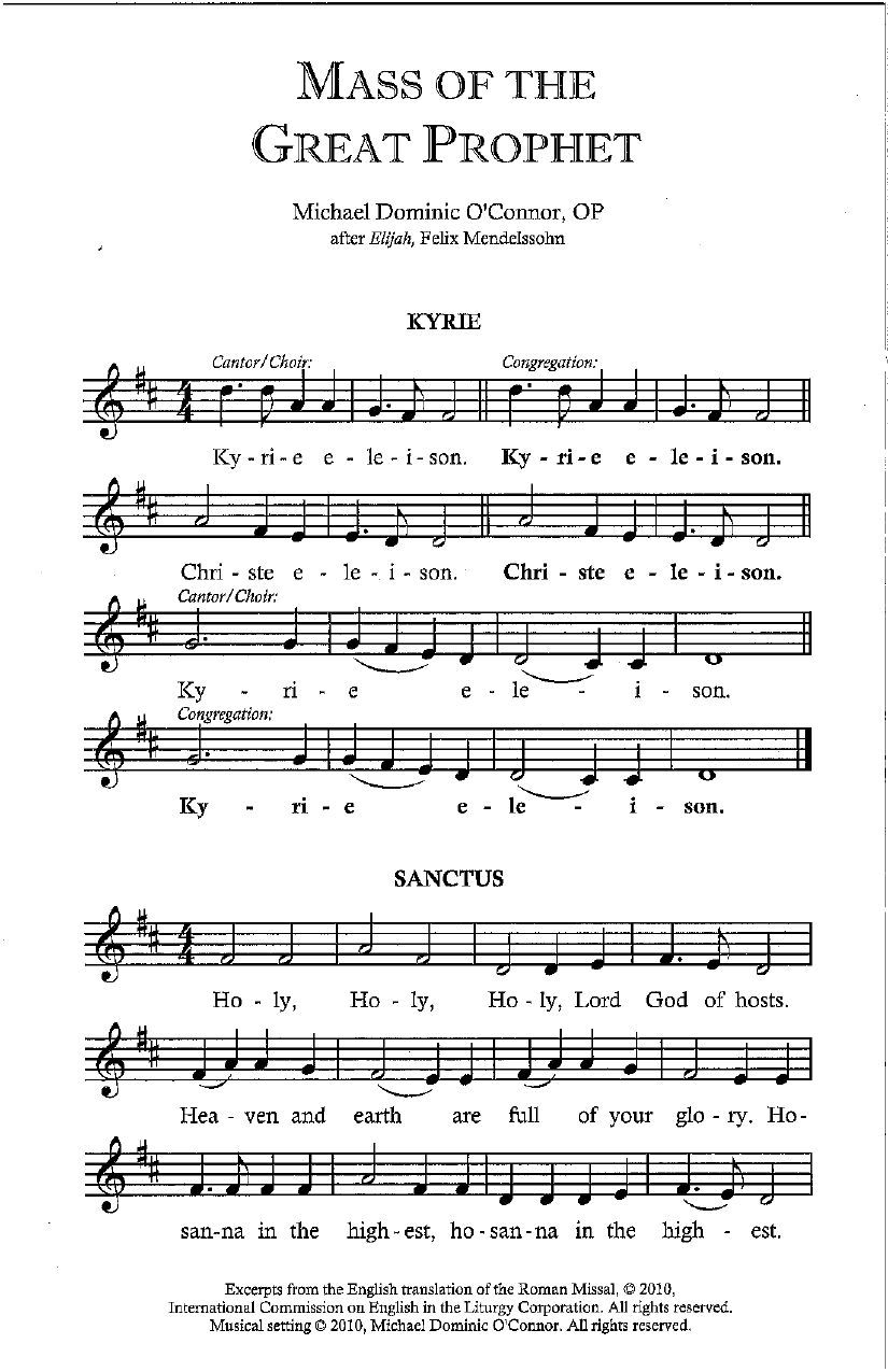For the recording of the remaining parts from Mass of the Great Prophet, you may click on the yellow buttons at the bottom of the page. For those of you who enjoy following the music on the page, attached is the full assembly version of the Mass setting. Since Fr. Michael has generously offered it for use free of charge, anyone is invited to create a copy in their own preferred format.